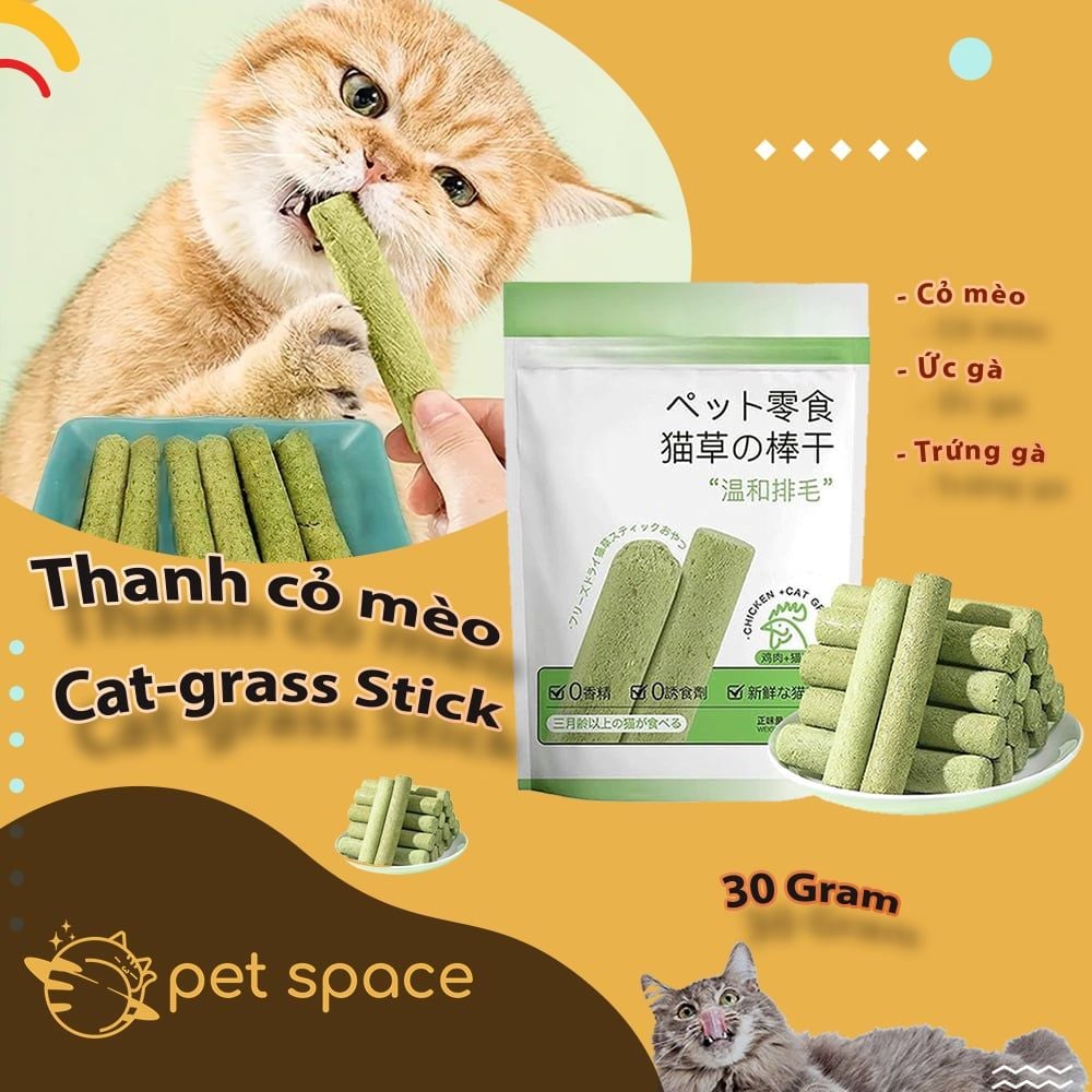 [30g] CATGRASS STICK - Thanh cỏ Mèo mix thịt gà Tiêu búi lông, mài răng cho mèo [30g]