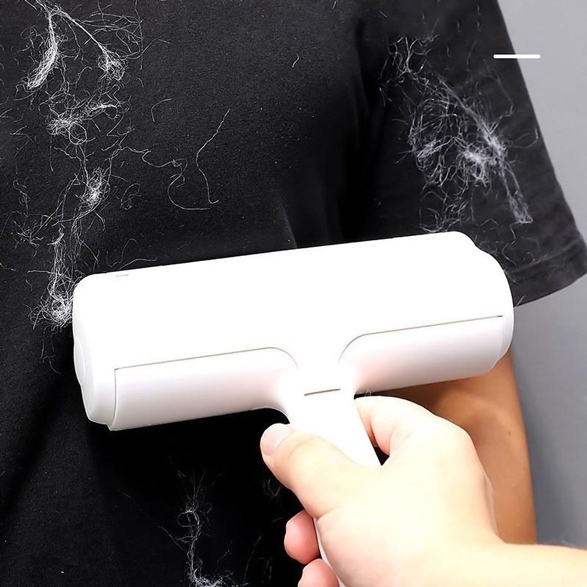 - Bước 1: Lăn trên bề mặt của đồ vật ( không sử dụng cho nền nhà). Lông sẽ được dính vào bề mặt của dụng cụ mà không cần 1 chất kết dính nào, toàn bộ là do lực ma sát tạo nên ( không bào mòn đồ vật, các bạn yên tâm).